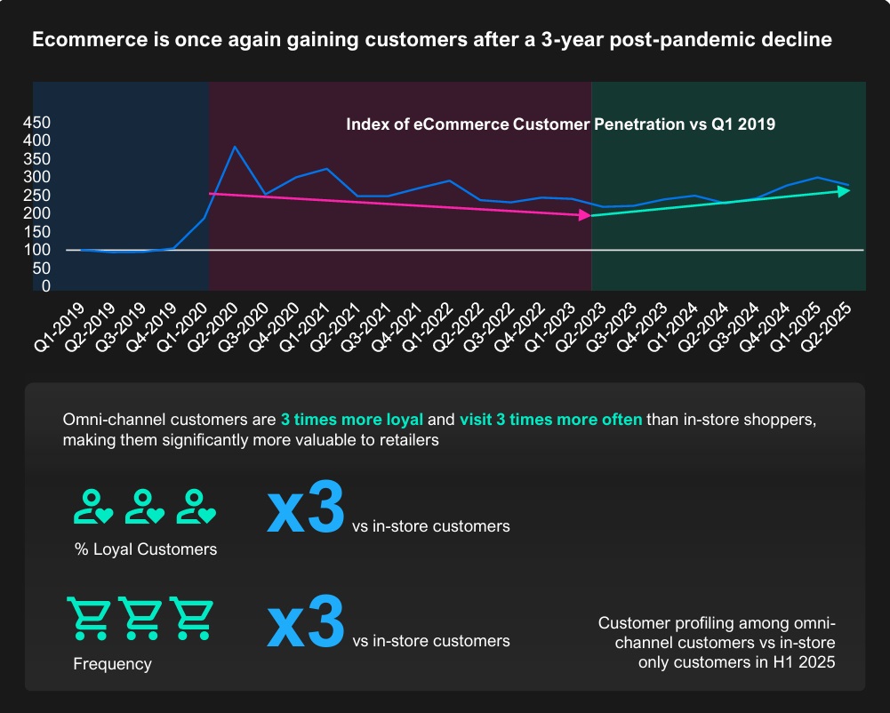 - European retailers, competing in a more mature digital market, are leaning into loyalty and frequency recovery. Many now leverage AI to synchronize digital offers and in-store experiences, reinforcing brand loyalty at the physical shelf.